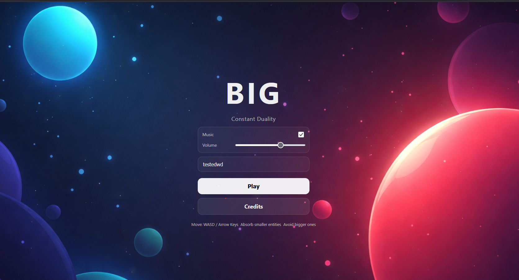 BIG – Constant Duality is a competitive browser-based arena game created for Micro Jam 054.
