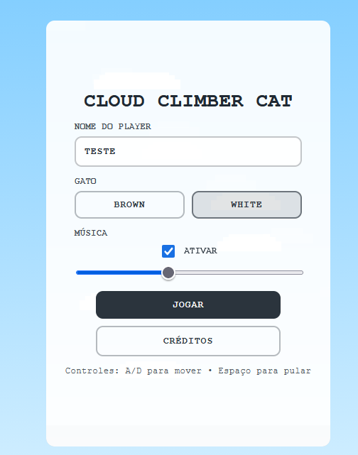 Cloud Climber Cat is a 2D infinite vertical platformer built with pure HTML, CSS, and JavaScript.