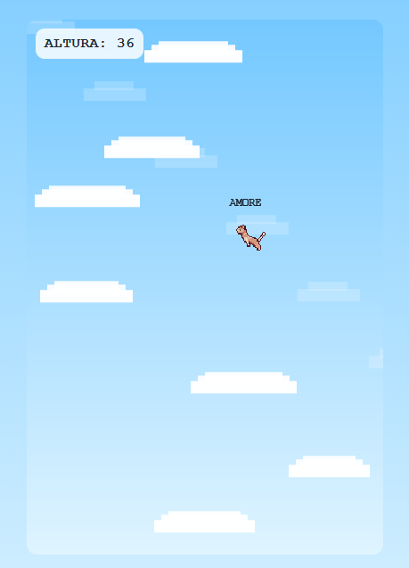 As you ascend, new clouds generate infinitely above you, creating a never-ending challenge. Precision, timing, and positioning are key — one missed jump and it’s game over.